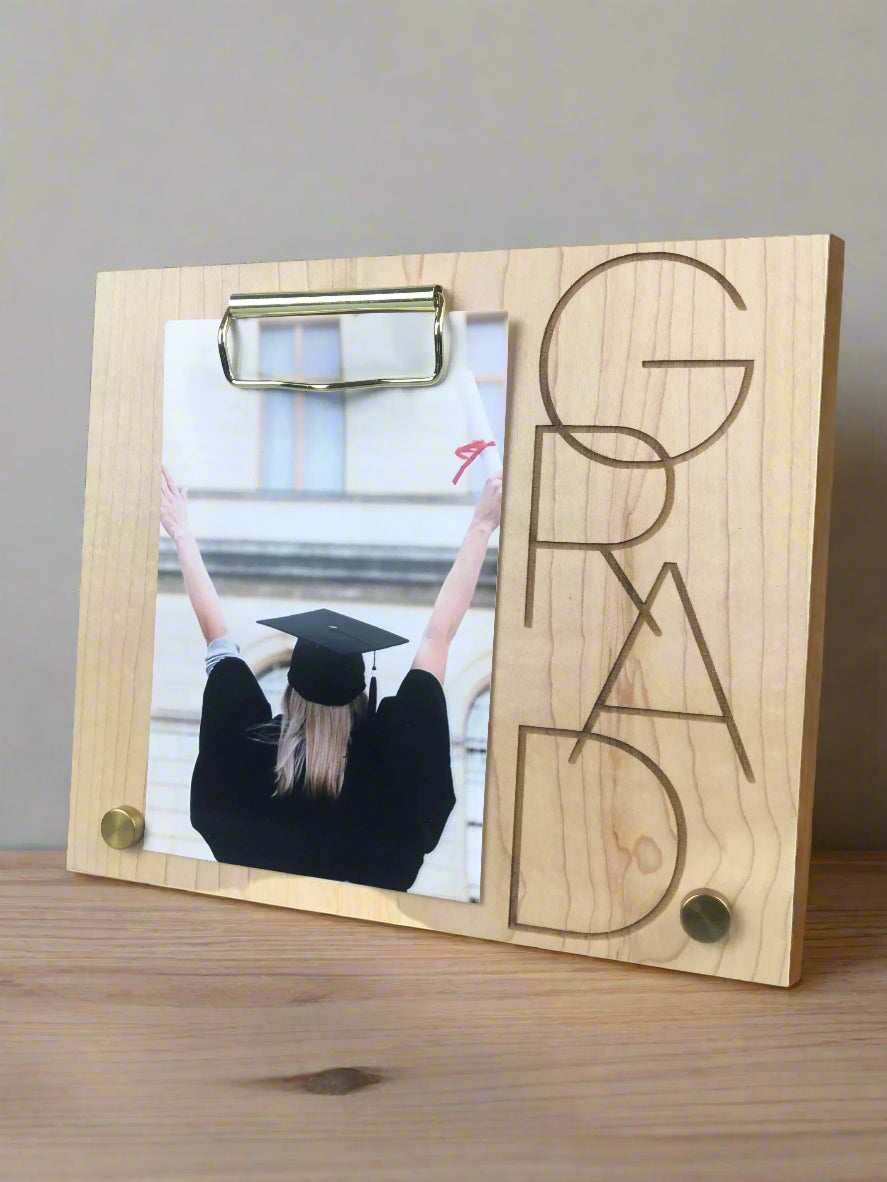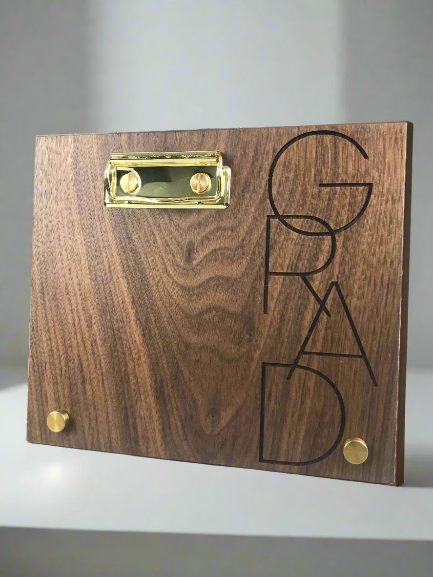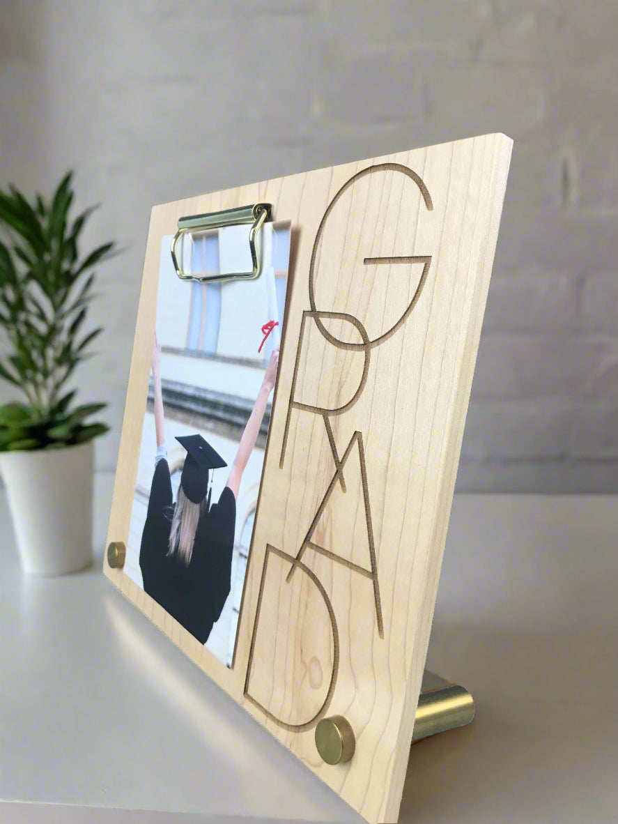 Celebrate your graduate’s achievement with this handmade solid wood tabletop frame—a meaningful keepsake that honors a proud milestone. Featuring a sleek laser-engraved “GRAD” design, it adds a stylish, contemporary touch to any space.