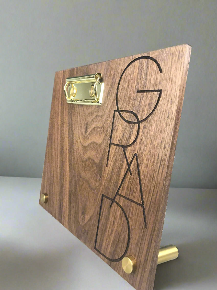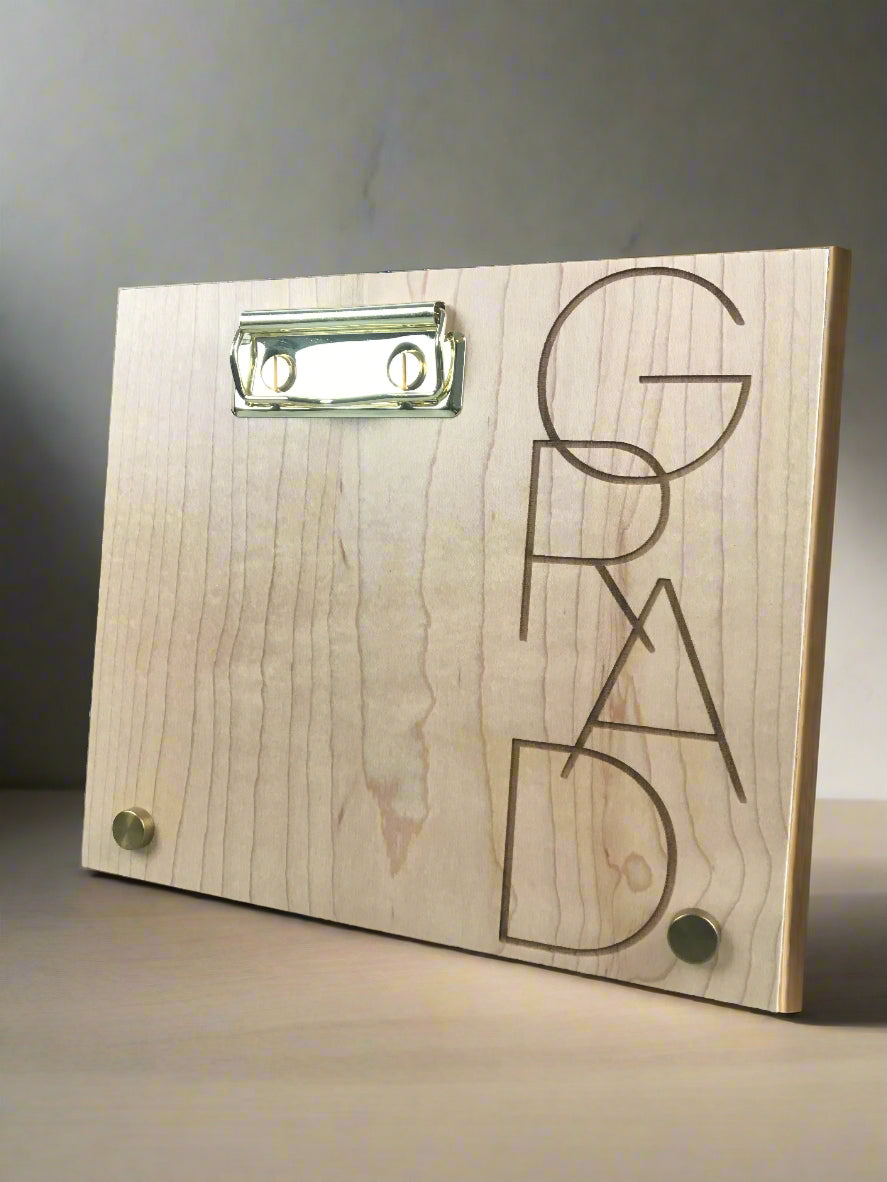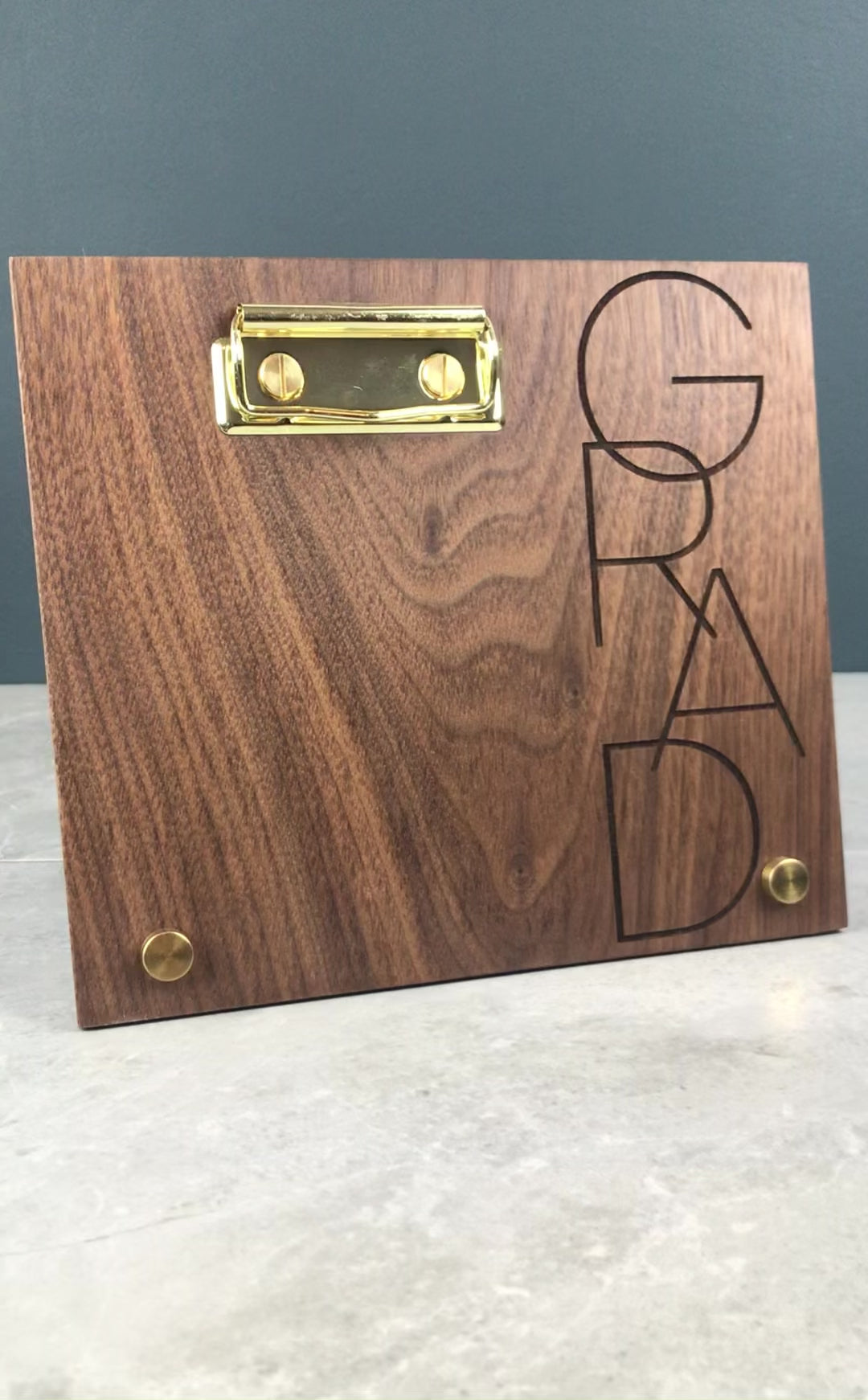 Celebrate your graduate’s achievement with this handmade solid wood tabletop frame—a meaningful keepsake that honors a proud milestone. Featuring a sleek laser-engraved “GRAD” design, it adds a stylish, contemporary touch to any space.