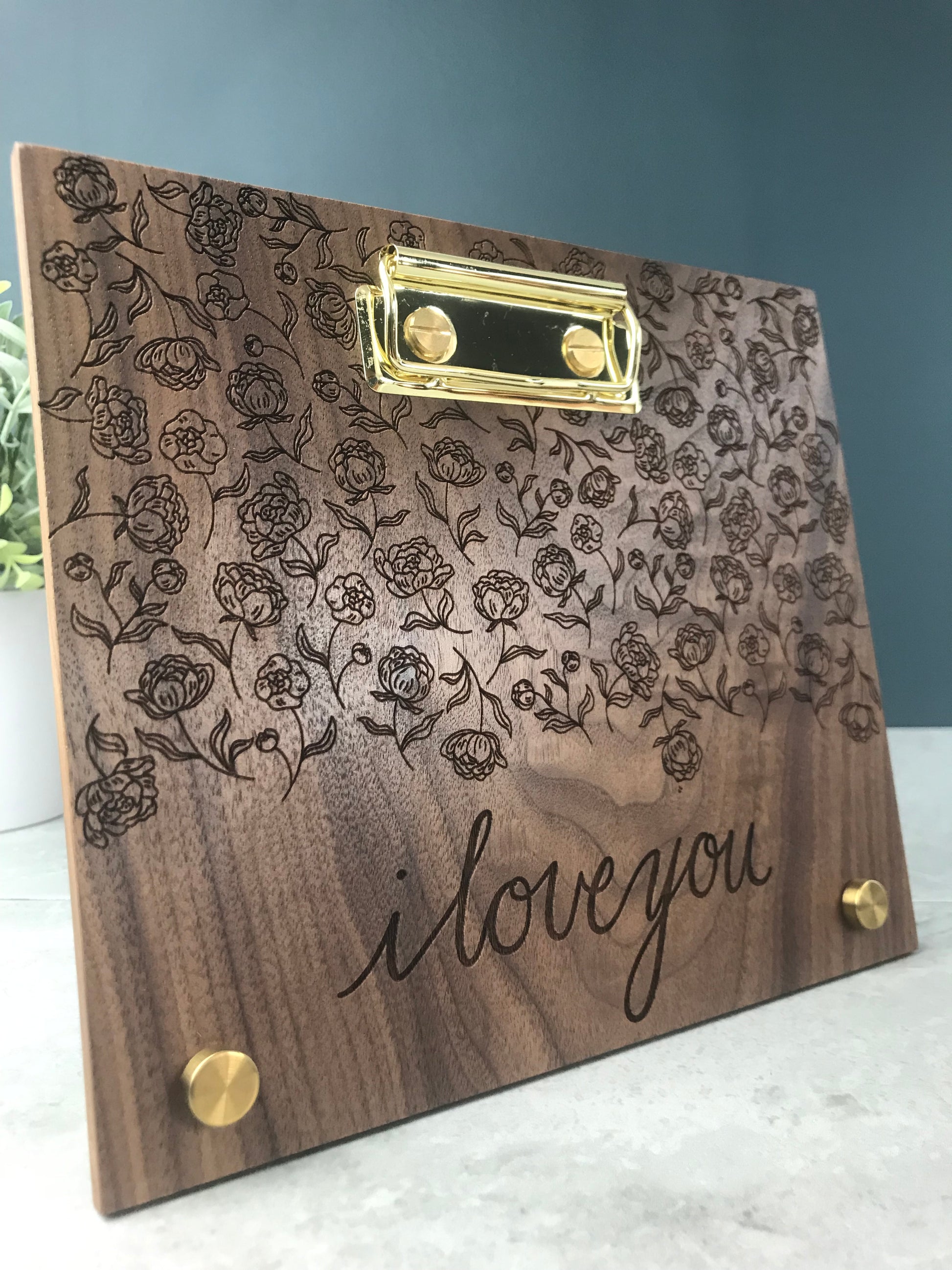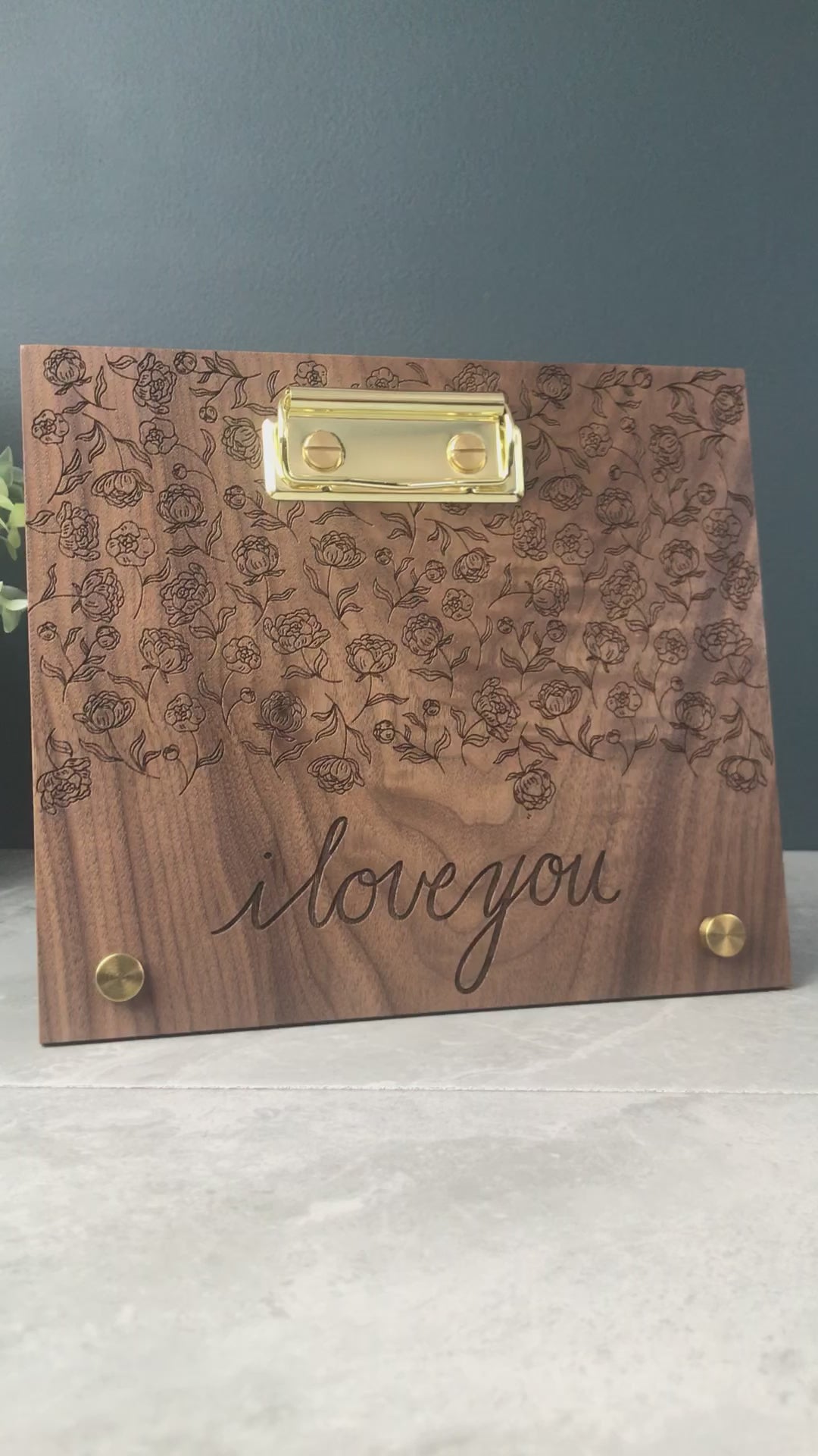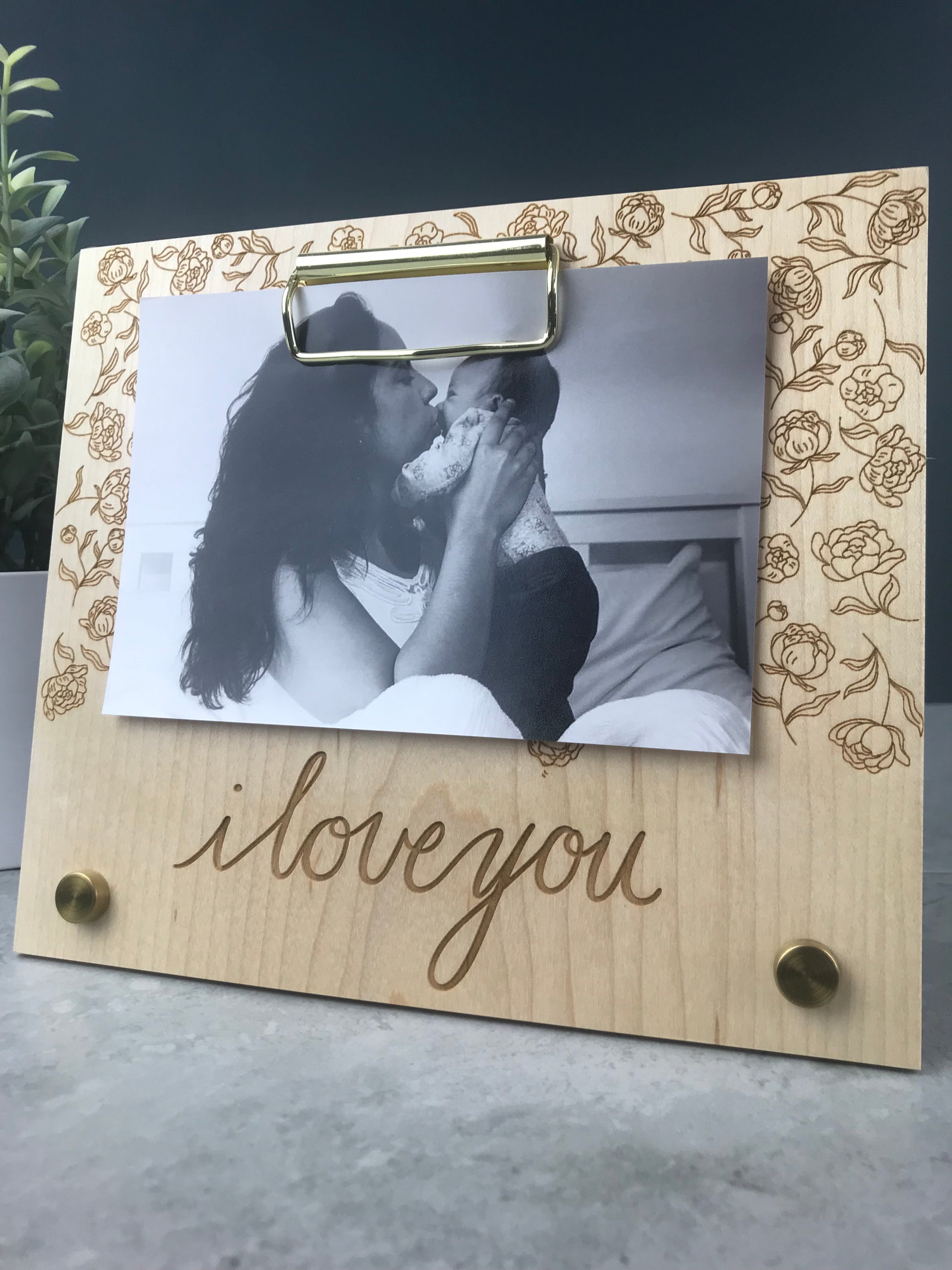 Show off your favorite memory in a frame that’s as special as the photo inside. The sweet “i love you” engraving and floral design make it a perfect gift for anniversaries, weddings, or just because. The brass clip makes swapping out photos quick and easy, so you can keep it fresh with your favorite moments.