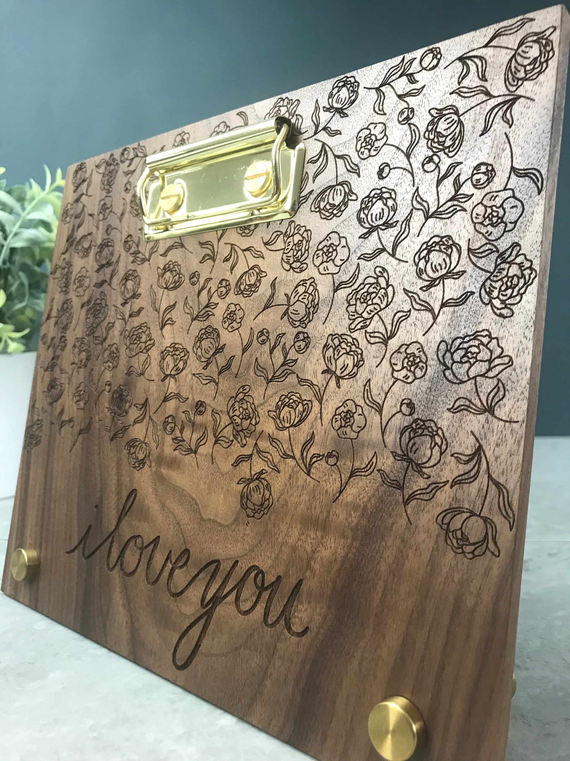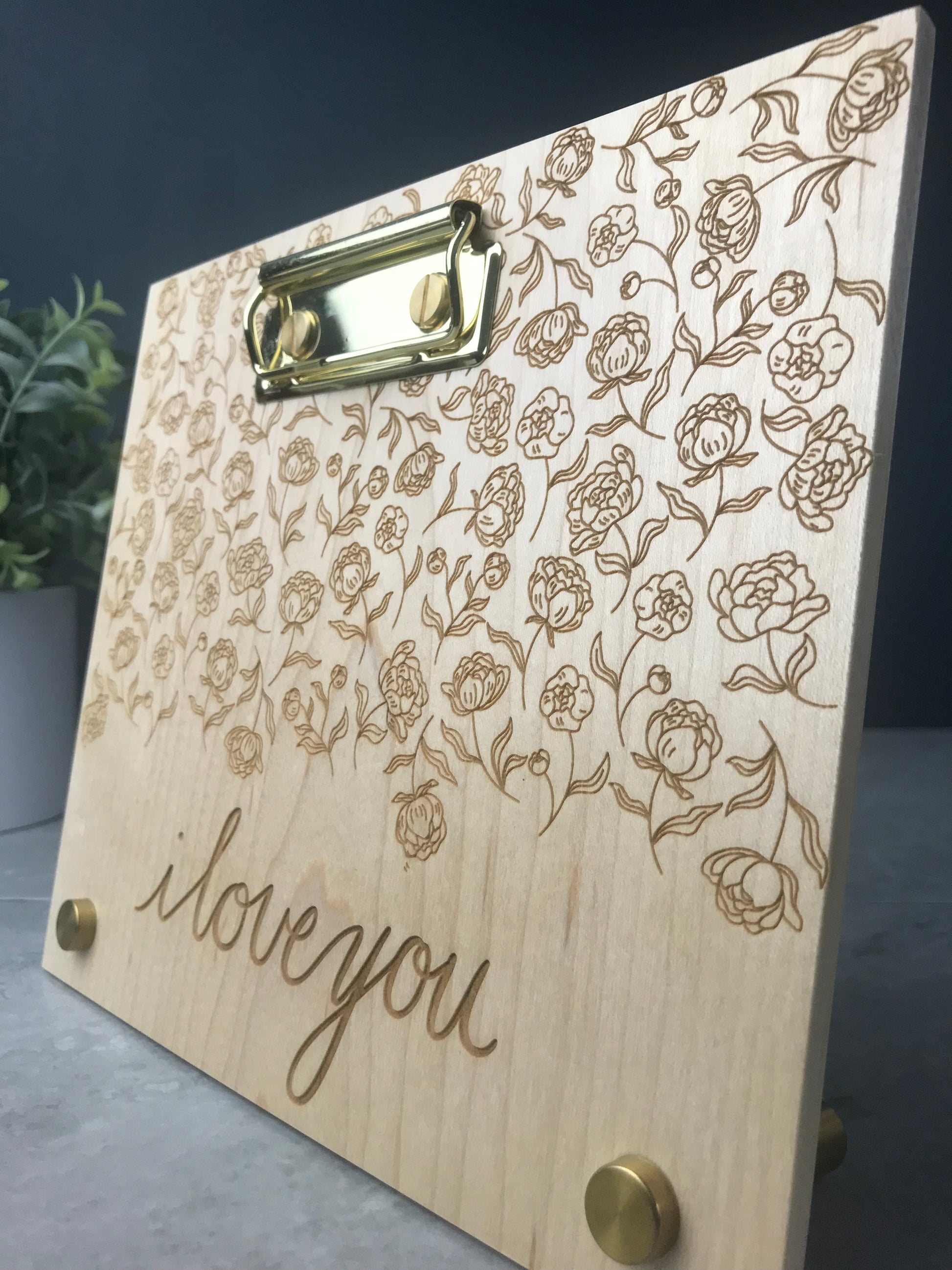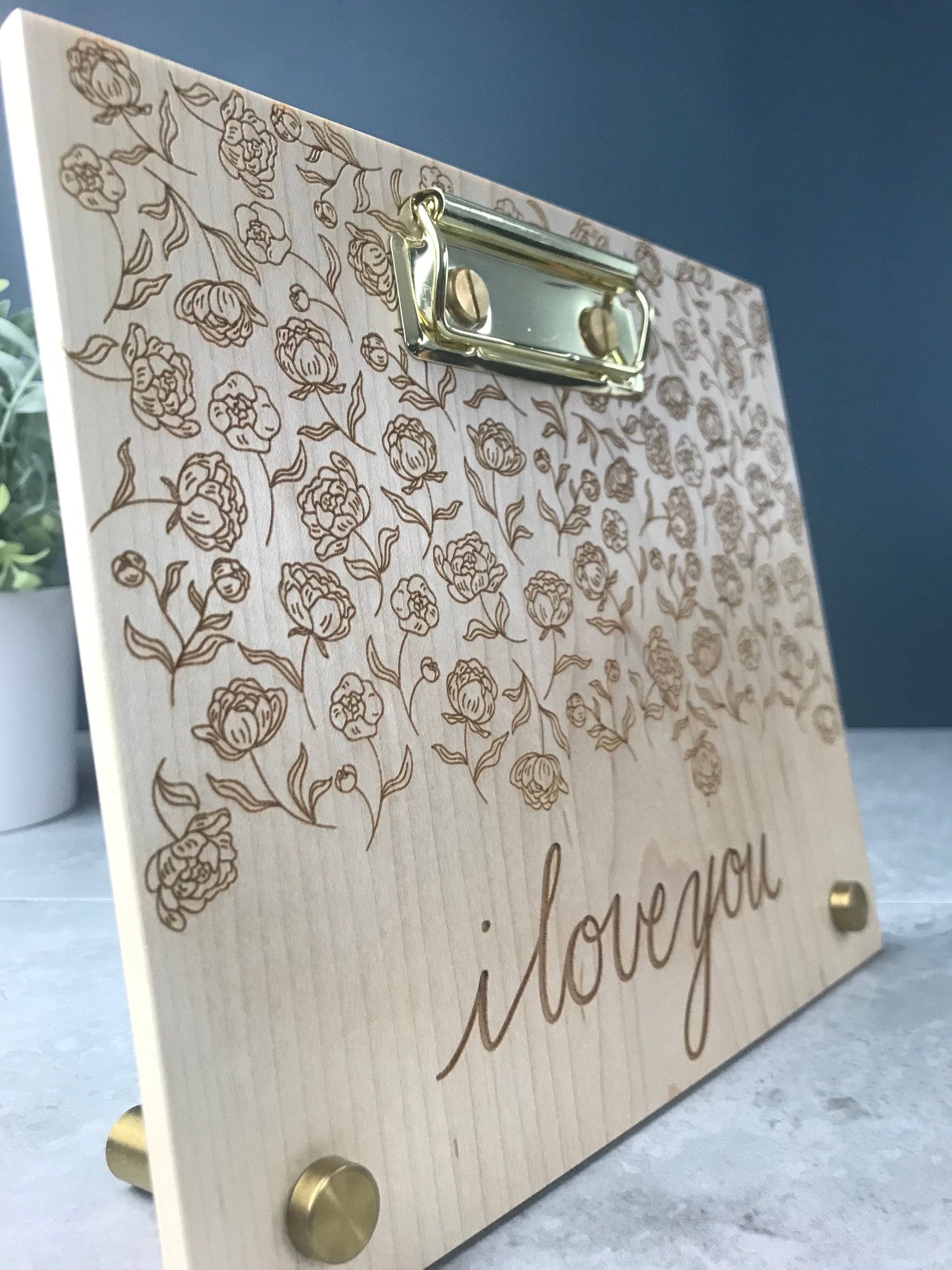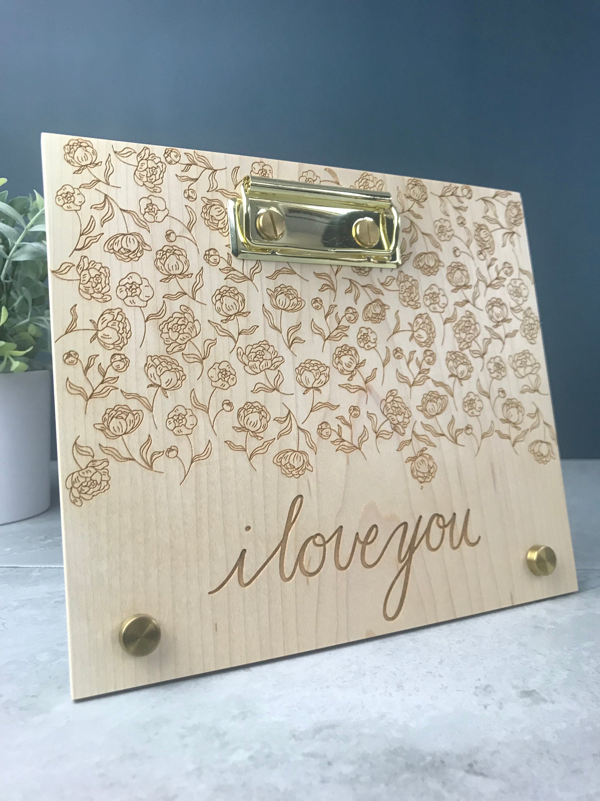 Show off your favorite memory in a frame that’s as special as the photo inside. The sweet “i love you” engraving and floral design make it a perfect gift for anniversaries, weddings, or just because. The brass clip makes swapping out photos quick and easy, so you can keep it fresh with your favorite moments.