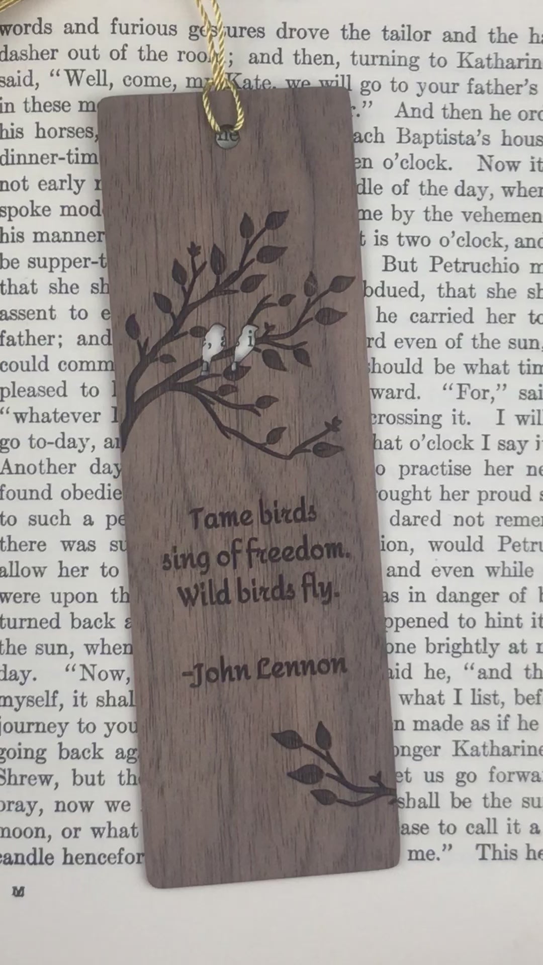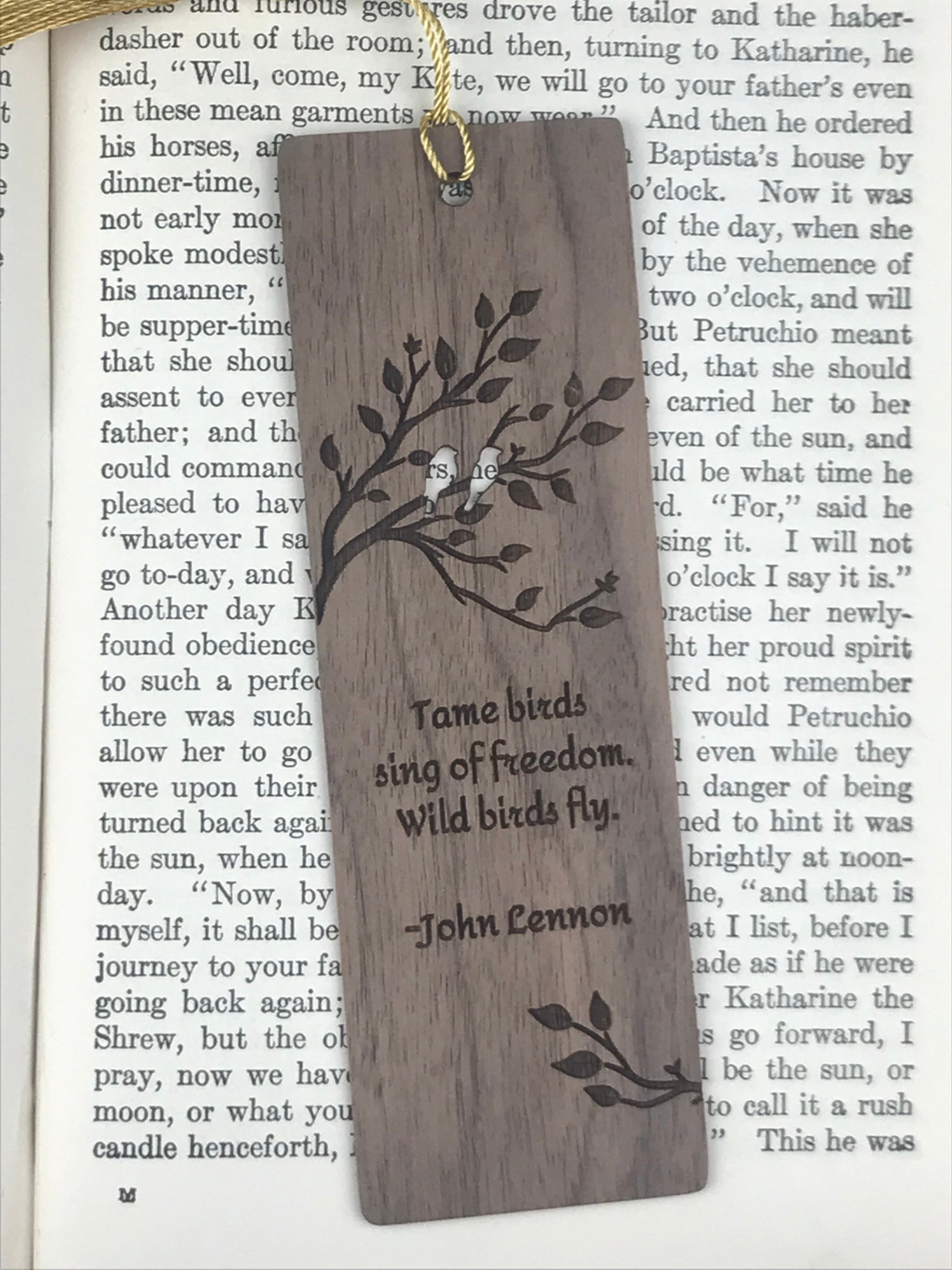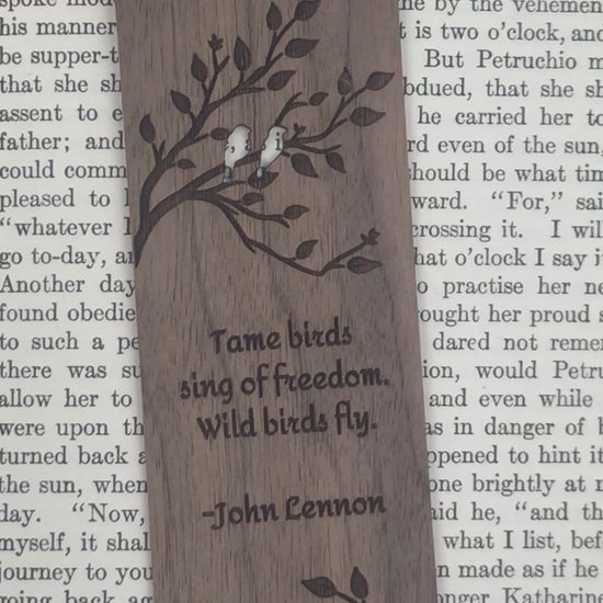 Crafted from solid wood, this bookmark is engraved with a thought-provoking reflection from John Lennon, offering a reminder of the contrast between safety and freedom. The natural beauty of the wood enhances its timeless feel, while the back may be personalized with a short engraved message, making it a unique and meaningful gift for dreamers, readers, and free spirits alike.