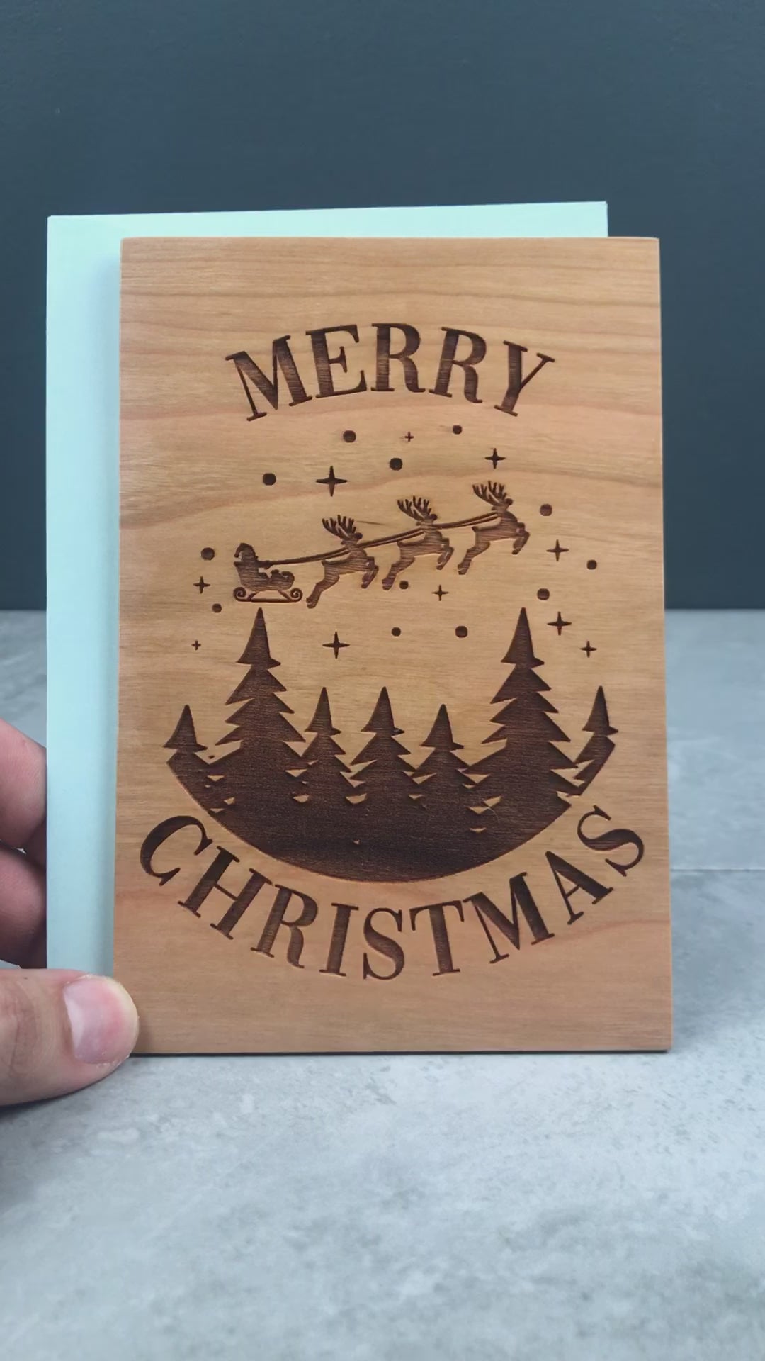 Made from natural hardwood and designed to bring a cozy, festive touch to your message, this card offers a unique and lasting way to celebrate the season. Its smooth finish and timeless look make it a keepsake your loved ones can treasure year after year. Each card comes with a premium envelope, ready to gift or display.