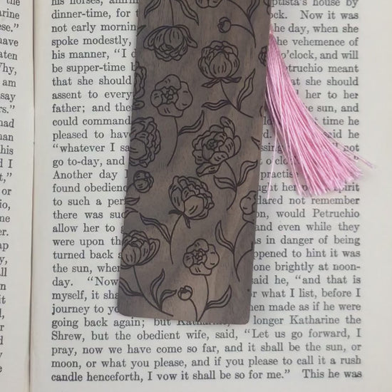 Our wooden bookmark blends natural beauty with personalization. Choose between rich walnut or warm cherry wood, each featuring an elegant floral peony design on the front. The back can be customized with a short, meaningful message, making it a thoughtful gift or a cherished keepsake.