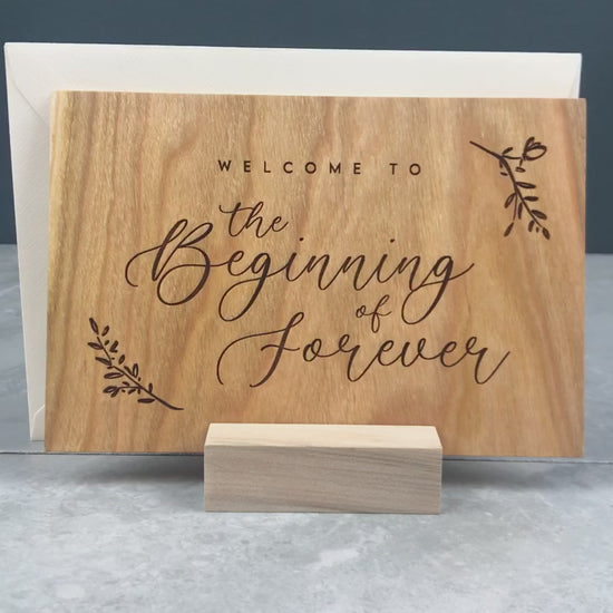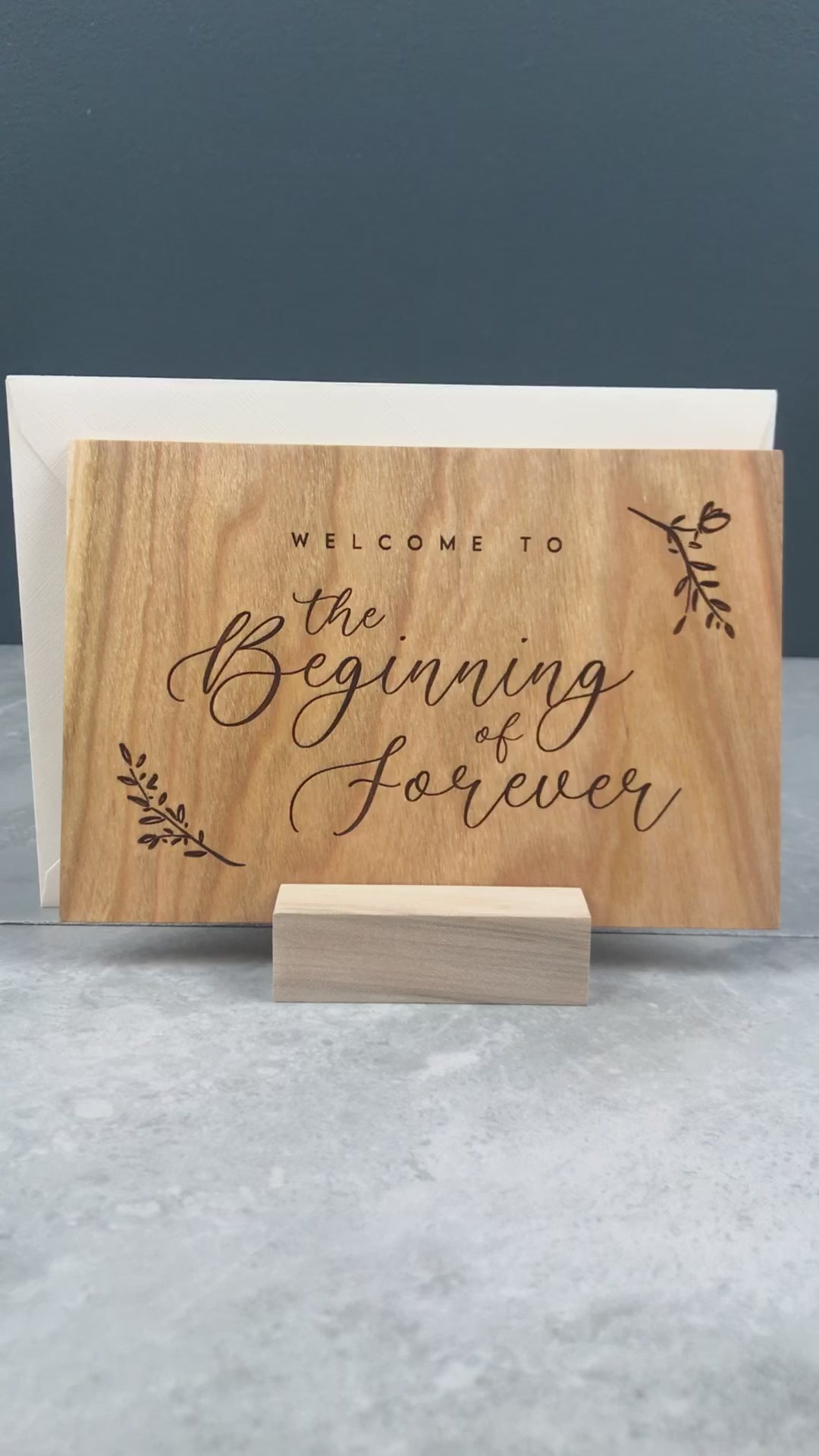 Due to the natural variation in wood, each card is truly one of a kind, with its own unique color and grain pattern. We cut and laser engrave every card individually in our workshop, using only solid hardwood—no plywood, no stains, no paint—letting the natural beauty of the wood shine. Thoughtfully made to stand the test of time, each piece is as distinctive and memorable as the moments it’s meant to showcase.